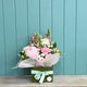 This elegant white and green box arrangement is the perfect tribute for the loss of a loved one. Crafted with care and expertise, this arrangement brings a sense of peace and comfort during difficult times. Its serene colours and delicate blooms offer a heartfelt expression of sympathy.